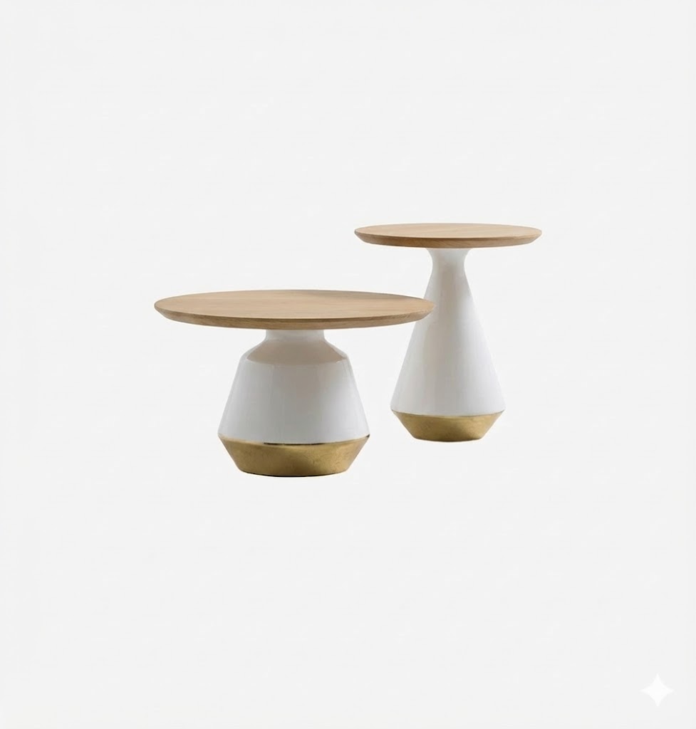 Doua masute cu baza ceramica si top furnir stejar
